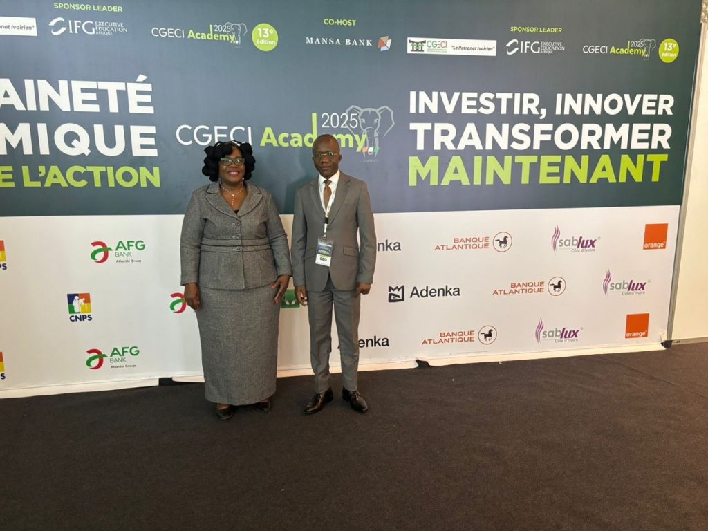 La Commission nationale de la Francophonie (CNF) de Côte d’Ivoire, conduite par Mme Bernise N’Guessan, a marqué de sa présence la cérémonie d’ouverture de la 13ᵉ édition de la CGECI Academy, le 29 septembre 2025, tenue à l’Hôtel Ivoire. Une délégation composée de Mme la Secrétaire Générale, des Secrétaires Généraux Adjoints, de Mme ÉDIAO, Mme Abdou et Mme Kouassi Fabiola a représenté l’institution avec rigueur et engagement.